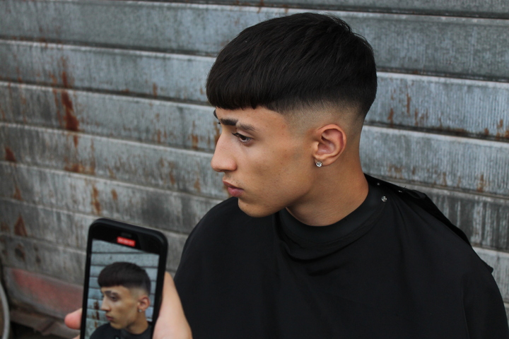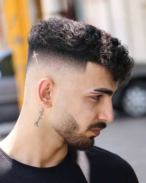 Sfumatura laterale: I capelli sui lati e sulla nuca vengono tagliati a una lunghezza corta o sfumata per creare un contrasto con la parte superiore.
